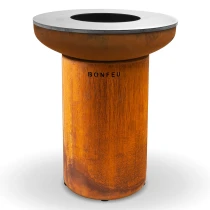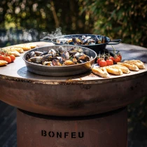 BonBiza är mer än en traditionell grill – det är ett komplett utomhuskök designat för både grillning och plancha-matlagning. Tillverkad av väderbeständigt kolstål med cortenfinish kombinerar den hållbarhet, funktion och ett naturligt rustikt utseende. Med sin generösa matlagningsyta på Ø80 cm är BonBiza perfekt för att tillaga hela måltider för upp till åtta personer.