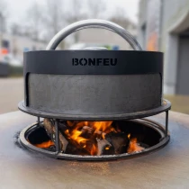 BonFeu Set med BonBiza Eldstad Cortenstål, Subbel Stålring för Grill, Grillgaller Rund & Pizzaugn