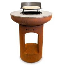 BonBiza XL kan kompletteras med flera BonFeu-tillbehör som grillgaller, spett-ring, pizzaugn eller rotisserie-set, vilket gör den till ett komplett och modulärt utomhuskök.