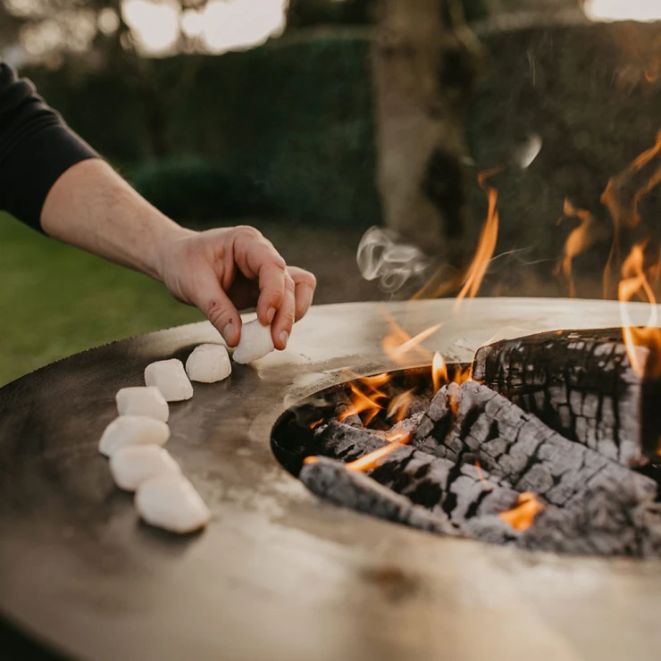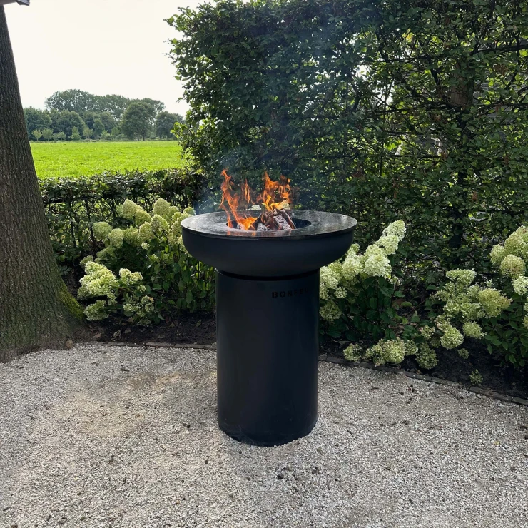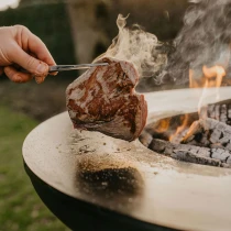BonBiza är särskilt speciell eftersom du inte bara kan njuta av en mysig eld utan också tillaga läckra måltider på den med planchan. Planchan har en diameter på 80 cm, är 6 mm tjock och fungerar utmärkt som stek- och bakyta. Tack vare den stora storleken kan du tillaga flera olika rätter samtidigt, och värmen sprids gradvis från mitten till kanterna, vilket gör planchan mångsidig och idealisk för olika typer av matlagning. Konstruktionen är robust och anpassad för långvarig användning utomhus, oavsett säsong.