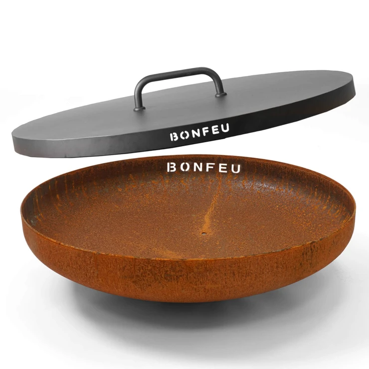 BonFeu Set med BonBowl Eldskål Cortenstål 100 cm, Lock för BonBowl & Plancha