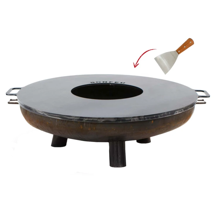 BonFeu Set med BonBowl Plus Eldskål Cortenstål 80 cm, Plancha & Stekspade