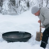 BonBowl Plus är en kraftig och elegant eldstad tillverkad av 3 mm tjockt cortenstål. Med sina tre stabila ben och två praktiska handtag är den enkel att flytta och står stadigt på alla underlag. Cortenstålet utvecklar med tiden en varm rostbrun patina som skyddar stålet mot vidare korrosion och ger ett levande, naturligt utseende. Tack vare sin hållbara konstruktion kan BonBowl Plus stå utomhus året runt utan underhåll.