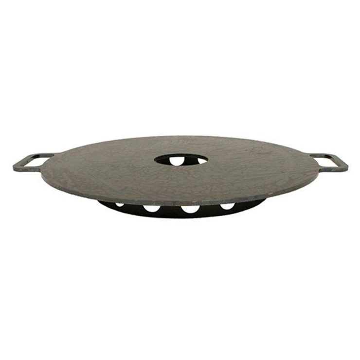 Plancha-plattan placeras direkt ovanpå eldstaden efter att locket tagits bort. Den värms snabbt upp och erbjuder en autentisk matlagningsupplevelse. Efter användning kan den enkelt rengöras genom att skrapa matrester in i elden och torka av ytan.