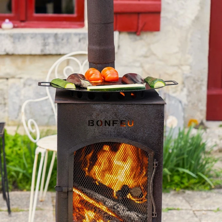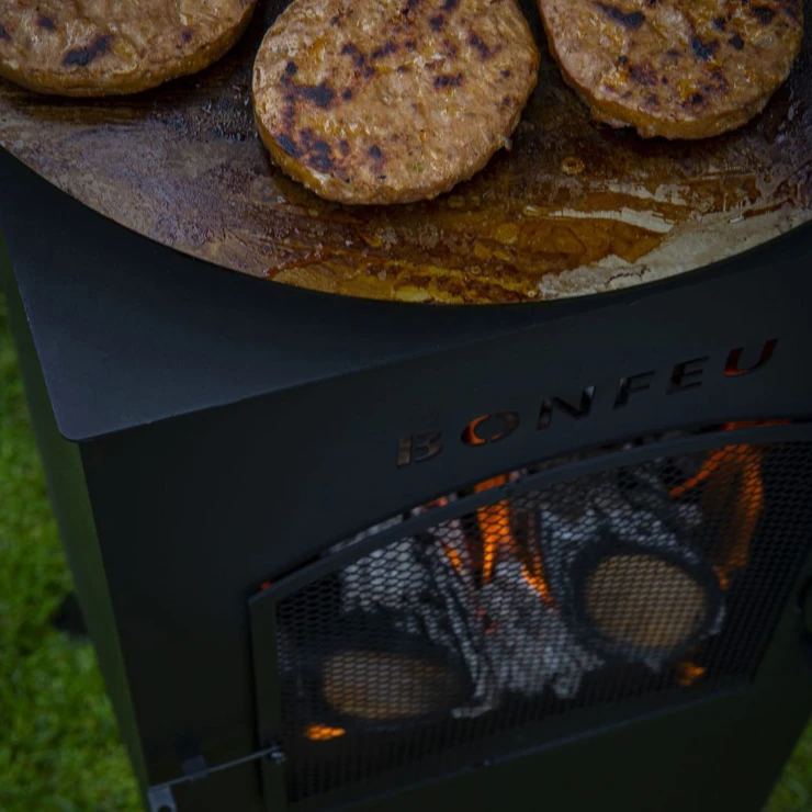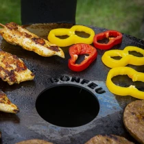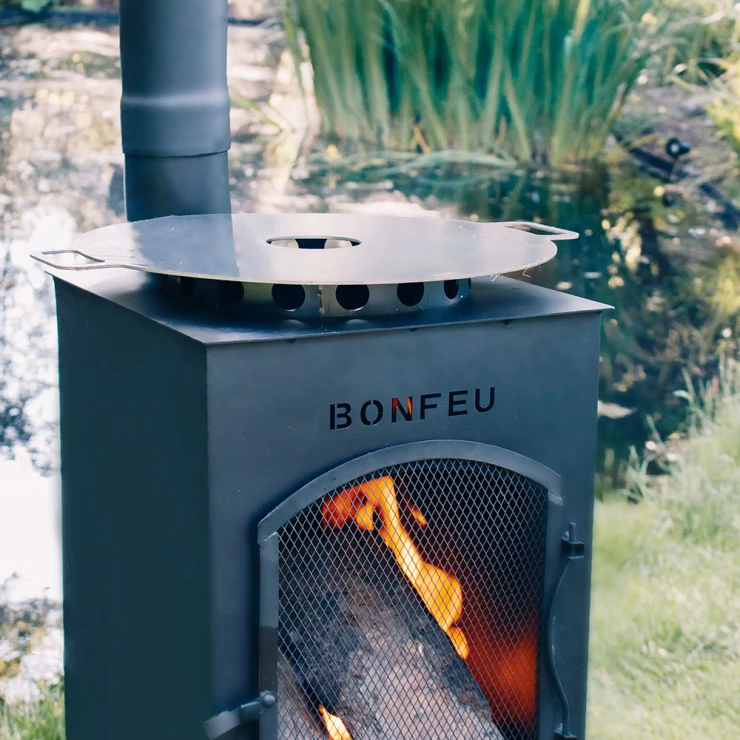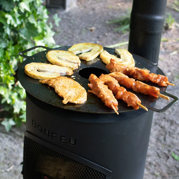 Med BonCarré kan du grilla, woka och använda plancha samtidigt som du njuter av den öppna eldens värme. Eldstaden levereras komplett med grillgaller, lock, gnistskydd, wokrings och eldgaffel – allt för att skapa en autentisk och mångsidig matlagningsupplevelse utomhus.