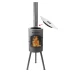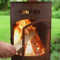 Eldstaden levereras med både lock och grillgaller, vilket gör det enkelt att växla mellan mysig eldning och matlagning. Placera gallret över lågorna för klassisk grillning eller använd locket för att bevara värmen och skydda eldstaden när den inte används.