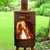 BonFeu BonGiano SP är en stilfull och funktionell eldstad som kombinerar klassisk design med praktisk användning. Den fungerar både som värmekälla och grill, vilket gör den till ett perfekt val för trädgård, terrass eller uteplats. Tack vare den runda formen och den integrerade skorstenen får du effektiv rökavledning, medan dörren med gnistskydd gör användningen säker och bekväm genom att hålla veden på plats och minimera gnistspridning.