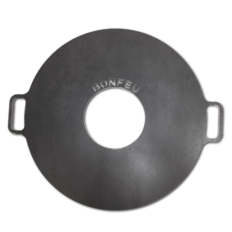 BonFeu BonPlancha 40 är en kompakt och professionell stekplatta i stål som förvandlar din BonGiano SP till ett komplett utomhuskök. Med en diameter på Ø40 cm och två integrerade handtag är den enkel att placera och hantera även när den är varm. Den tjocka 6 mm stålytan ger jämn värmefördelning och är perfekt för att tillaga kött, fisk, grönsaker och andra rätter direkt över elden.