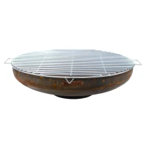 Det kraftiga grillgallret i stål är perfekt anpassat för eldskålar med Ø120 cm och förvandlar eldstaden till en komplett grillstation. Den öppna designen ger optimal värmeöverföring från lågorna under och gör det enkelt att grilla kött, fisk, grönsaker eller andra rätter över direkt eld. Gallret är tillverkat i tåligt, värmebeständigt stål och utrustat med handtag för enkel hantering och rengöring.