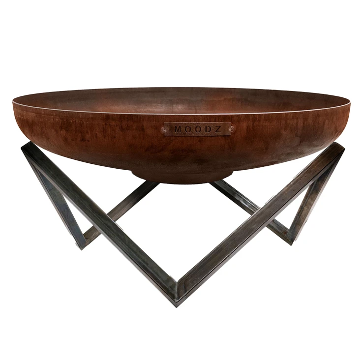 Den stora eldskålen från MOODZ är tillverkad i 3 mm tjockt cortenstål – ett material som utvecklar en varm, rostbrun yta med tiden. Den naturliga patinan skyddar stålet och gör att skålen kan stå utomhus året runt utan behov av målning eller underhåll. Med sin diameter på 80 cm blir den en elegant mittpunkt som bjuder in till avkopplande stunder och mysiga kvällar i trädgården.
