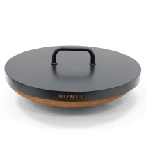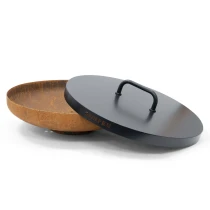 Det skyddande locket i svart stål är utformat för eldskålar Ø80 cm och läggs ovanpå skålen när den inte används. Locket skyddar mot regn, löv och smuts, hjälper elden att slockna snabbare genom att strypa syret och bidrar till att bevara eldskålens utseende över tid. Ett enkelt, robust och hållbart tillbehör för bekväm skötsel året runt.