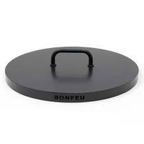 Det skyddande locket i svart stål är utformat för eldskålar Ø80 cm och läggs ovanpå skålen när den inte används. Locket skyddar mot regn, löv och smuts, hjälper elden att slockna snabbare genom att strypa syret och bidrar till att bevara eldskålens utseende över tid. Ett enkelt, robust och hållbart tillbehör för bekväm skötsel året runt.