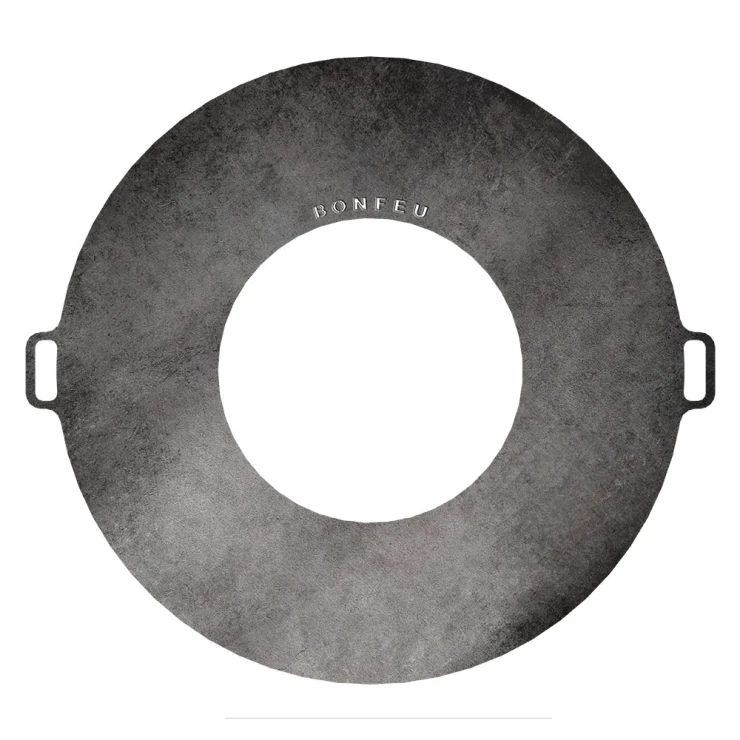 Den robusta BonFeu BonPlancha 80 är en fullstor stekplatta i stål som förvandlar din eldskål till en mångsidig utomhusgrill. Planchan är tillverkad av 2 mm tjockt stål och har två integrerade handtag för säker hantering. Den fördelar värmen jämnt över hela ytan och är perfekt för att grilla, steka och tillaga mat direkt över öppen eld. Den stora ytan gör det möjligt att laga flera rätter samtidigt, medan värmen sprids gradvis från mitten ut mot kanterna för optimalt resultat.