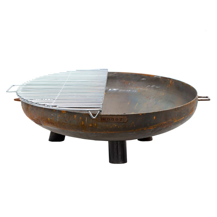 BonFeu Set med Eldskål Cortenstål med Fot 80 cm & Grillgaller Halvrund