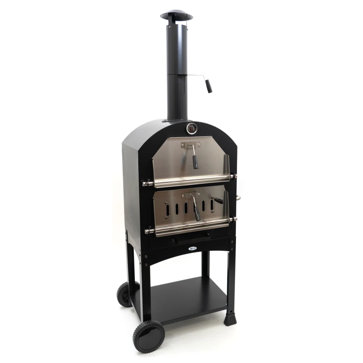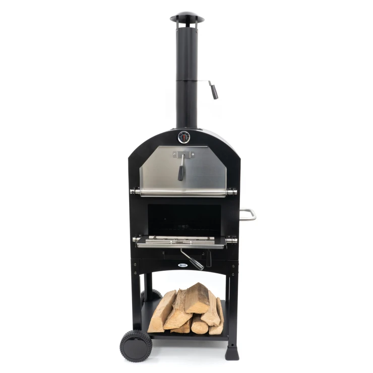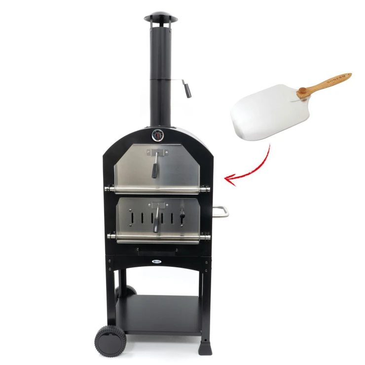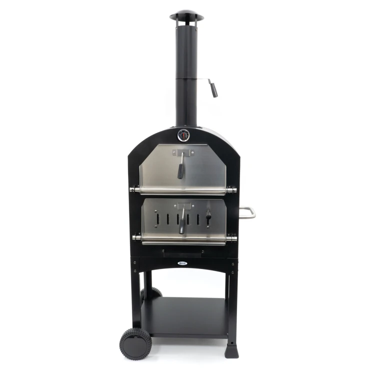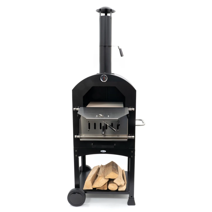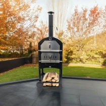 BonFeu Heat är en komplett vedeldad pizzaugn som förenar design, funktion och enkel användning. Med sin svarta finish och robusta konstruktion blir den ett elegant och hållbart tillskott till din uteplats. Utrustad med pizzasten, grill och inbyggd termometer ger den allt du behöver för att baka perfekta, krispiga pizzor – gång på gång.