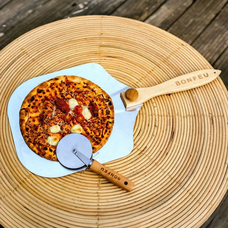 • Detta set kombinerar den stilrena BonFeu Pizzaugn Heat Svart med den praktiska BonFeu Stekspade för Pizza. En komplett lösning för alla pizzälskare som vill skapa äkta vedeldad smak och uppleva känslan av italiensk pizzabakning direkt i trädgården.
