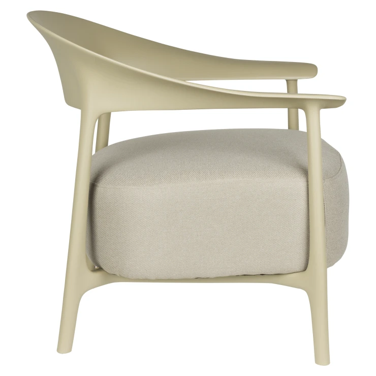 • Den rundade ryggdesignen ger utmärkt stöd medan den stora sittdynan tillför extra komfort. De fräscha, naturnära färgtonerna ger stolen en skandinavisk touch som är helt rätt i tiden.