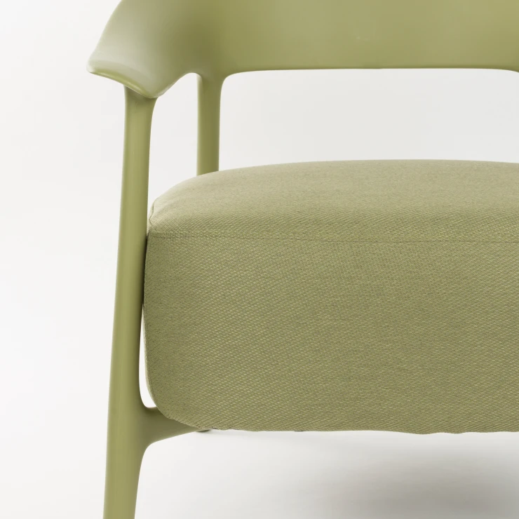 • Den rundade ryggdesignen ger utmärkt stöd medan den stora sittdynan tillför extra komfort. De fräscha, naturnära färgtonerna ger stolen en skandinavisk touch som är helt rätt i tiden.