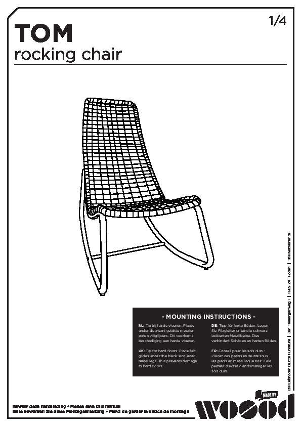Gungstolen Tom kommer från det nederländska varumärket WOOOD och är tillverkad av svartlackerad rotting. Denna beläggning gör Tom lämplig för alla väderförhållanden. Stativet i svart metall har en matt finish och en förstärkande stång.